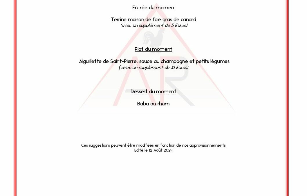 • Horaires Ouvert midi et soir du mercredi au samedi, Ouvert le dimanche midi.
