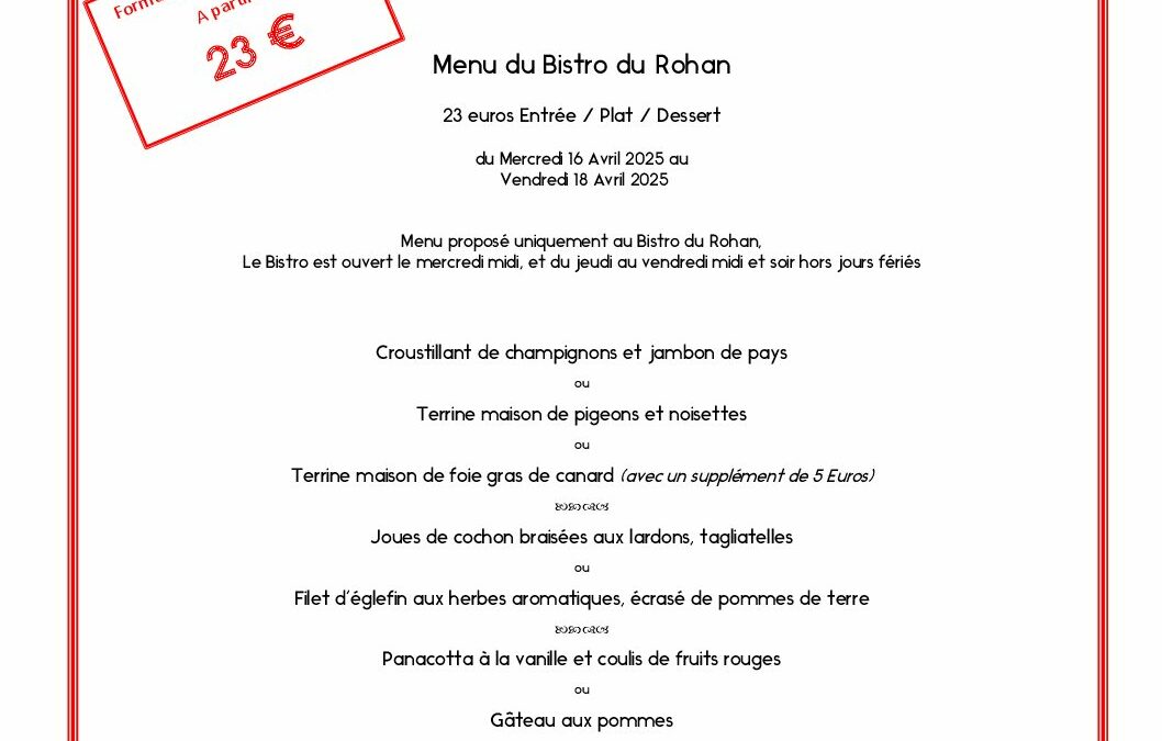 Les réservations en ligne pour les Menus des Fêtes de Fin d'Année se font uniquement via notre Boutique en Ligne ou directement sur place à l'Auberge du Rohan.