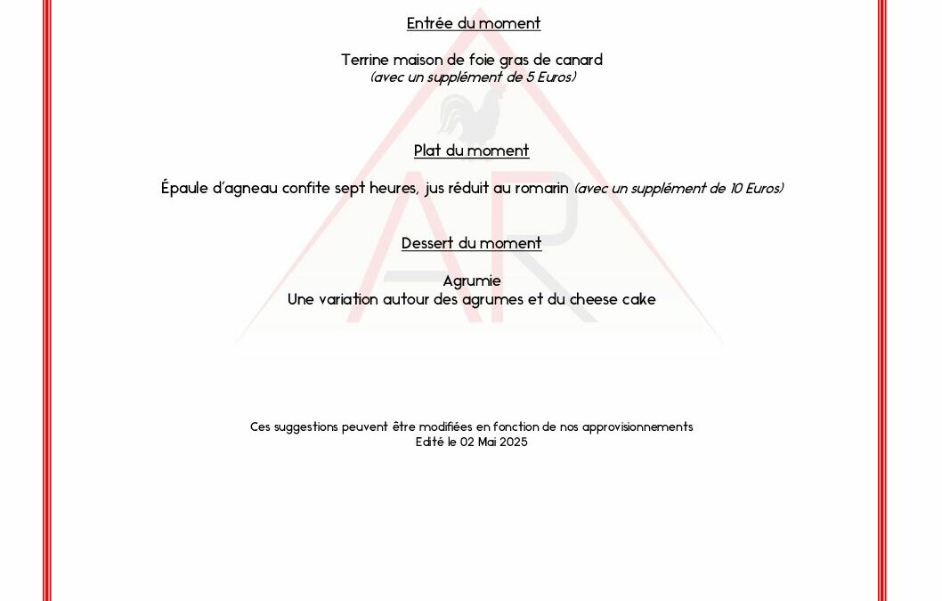 • Horaires Ouvert midi et soir du mercredi au samedi, Ouvert le dimanche midi.