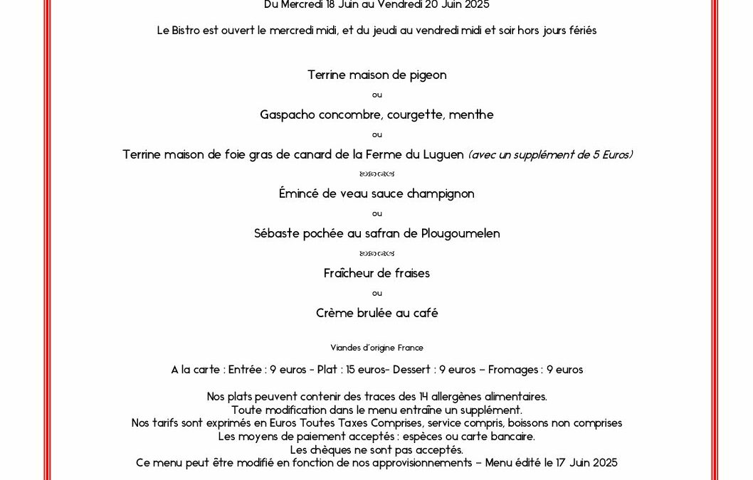 Actualités : Vous pouvez réserver votre table par téléphone au 02 97 44 50 50 ou directement via ce site.