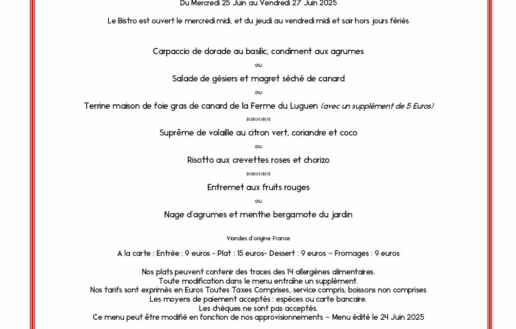 Les réservations pour les Menus des Fêtes de Fin d'Année sont ouvertes et se font uniquement via l'onglet "Menu des Fêtes-Boutique en Ligne" ou directement sur place à l'Auberge du Rohan.