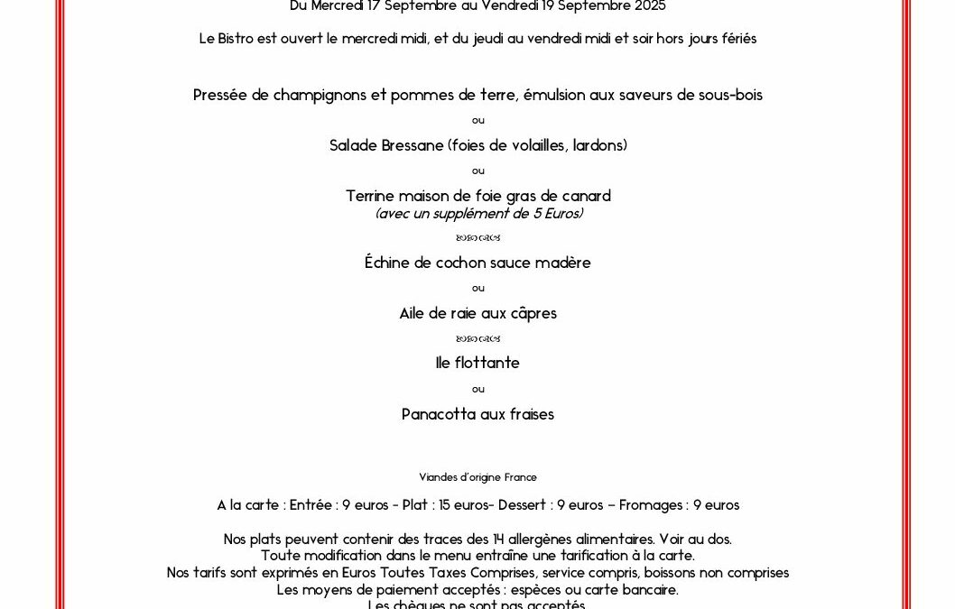 • Règlements acceptés : Carte Bleue ou espèces. Les chèques ne sont pas acceptés.